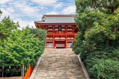 源頼朝が創建。約800年の歴史を持ち、源氏の氏神として、武士たちの信仰を集めてきました。主祭神は応神天皇・神功皇后・比売神の三柱で、これらを総称して「八幡大神」と呼び、「武運の神」「弓馬の守護神」として知られています。9月に行われる流鏑馬の神事は頼朝が天下泰平・国家安穏を祈願して始めたもの。鎌倉武士さながらの狩装束に身を包んだ射手が、馬で駆けながら的を射抜く神事は圧巻です。