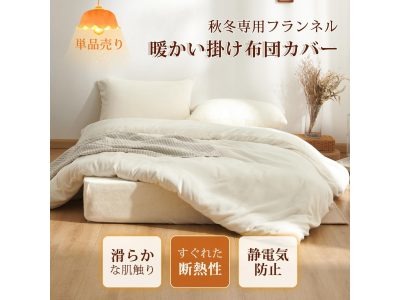 なめらかな肌触りは、まるでベルベット♪ 発熱&吸湿効果のあるフランネル素材の「掛け布団カバー」。あたたかいだけでなく、洗ったあと乾きやすいのがポイント
