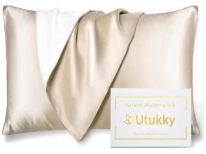 Utukky シルク枕カバー【TVで紹介】まくらカバー 片面シルク枕カバー 43×63cm 封筒式枕カバー シルクピローケース テンセル 洗える 寝癖軽減 抗菌防臭 美髪・美肌 敏感肌に優しい 四季適応 クリスマス 新年ギフト 贈り物 1枚セット シャンパン