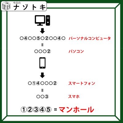 あとは数字の文字を順に拾っていきましょう。正解は「マンホール」でした。
