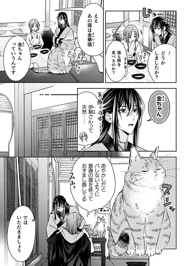 しかし火事が起きて店は消失。食堂の常連で後宮に仕える美しい青年、陽伊鞘に救われるが、彼の頼みで後宮付きの薬膳医になることに。