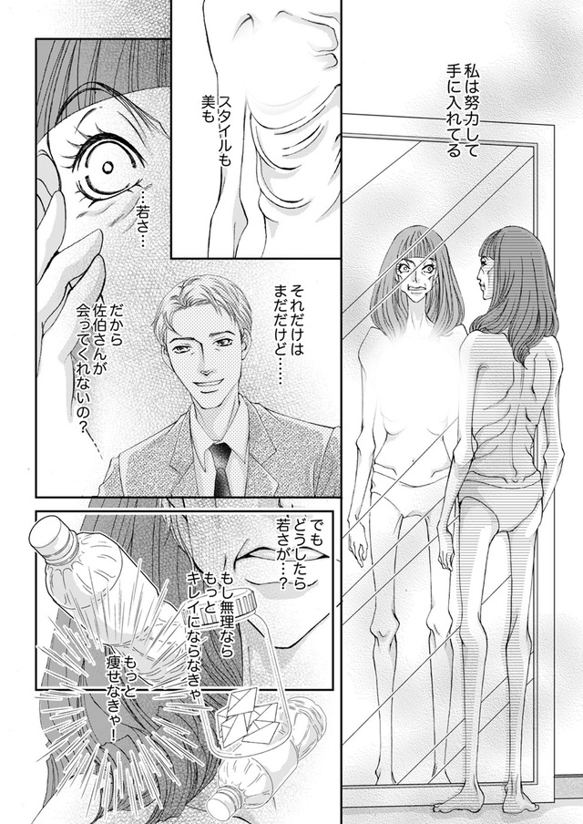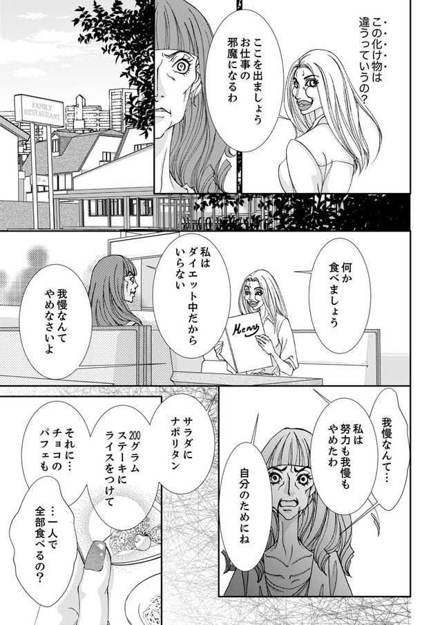 同僚のななみは、仕事ができず体型も自堕落。それなのに男が切れないことにイラつく主人公の礼子。ななみが礼子の想い人である上司を狙ってダイエットを始めたと知り、礼子は「あいつより絶対スリムに…!」という執念でサプリを荷重接収することに。女性の執念と嫉妬が導く衝撃の結末とは?