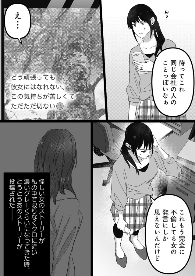 サレ妻漫画の編集者のミコトは、夫の浮気疑惑を誰かに相談したくてSNSアカウント「サレ妻予備軍ちゃん」を開設すると、夫のSNSに毎回‟いいね“を付けている女が…