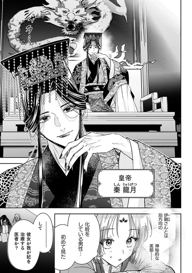 しかし火事が起きて店は消失。食堂の常連で後宮に仕える美しい青年、陽伊鞘に救われるが、彼の頼みで後宮付きの薬膳医になることに。