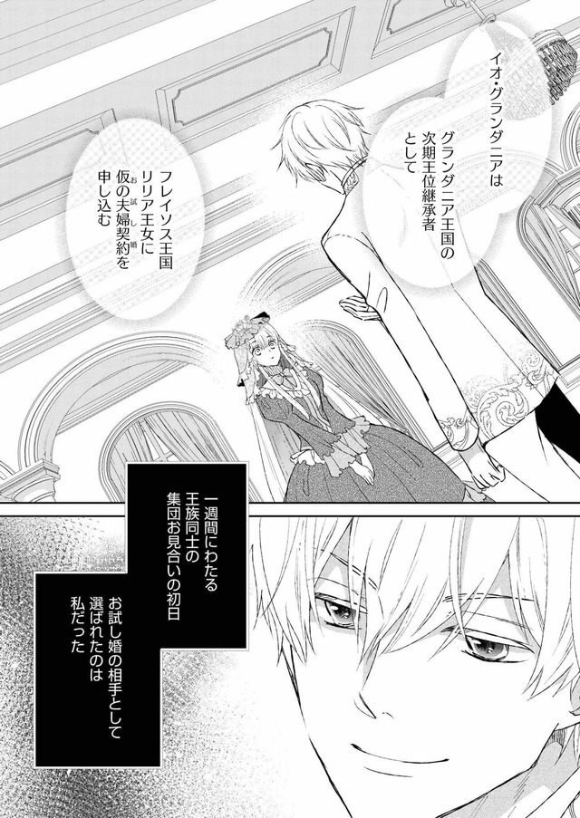 伝統と信仰を重んじるフレイソス王国は超がつくほどの貧乏国。第一王女リリア・フレイソスはこの財政難を脱出するため、超大国グランダニア王国が開催するお見合い結婚パーティ…通称『お試し婚』に参加することに。
