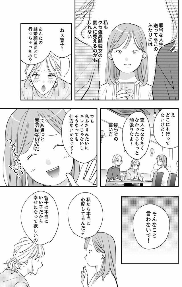 周囲の目を気にして生きる37歳の智子。彼女が働く企業の総務部には、他人の目を気にせずど派手なファッションに身を包み、空気を読まず自由にふるまう初瀬はるがいる。結婚や年齢の呪縛に苦しむ智子は、「クセ強の高齢独女」と揶揄されながらも他人の評価を気にしない初瀬の姿に救いを見出していく。「オバ見え」や「結婚」といった社会の圧と戦い、自分らしさを取り戻そうとする物語。
