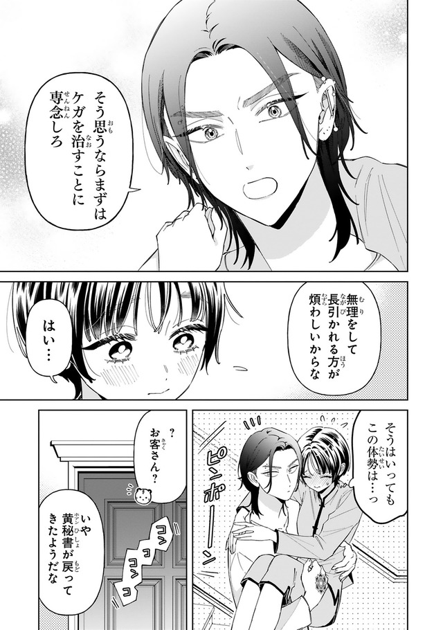 抱き上げて部屋まで連れて行ってくれるボス。いくらケガしてるからって、ドキドキせずには…【世話焼きマフィアと薄幸少女 #19】
