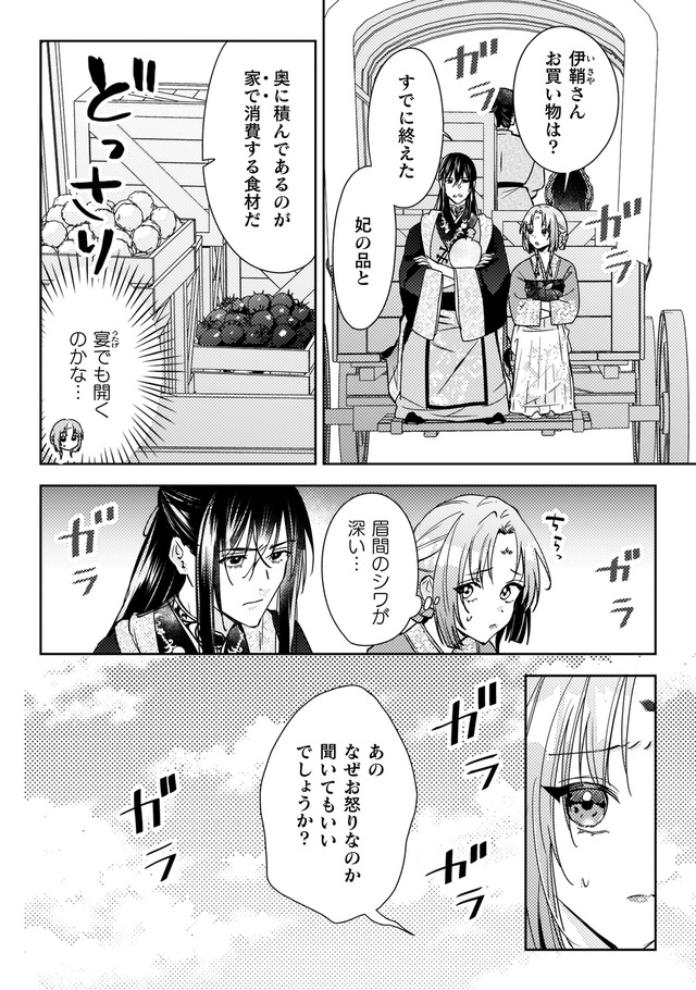 しかし火事が起きて店は消失。食堂の常連で後宮に仕える美しい青年、陽伊鞘に救われるが、彼の頼みで後宮付きの薬膳医になることに。