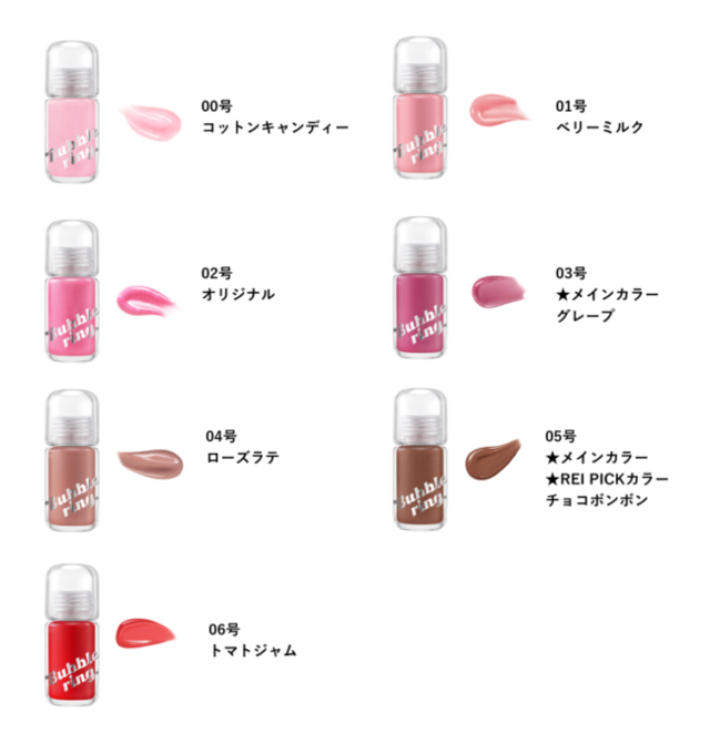 フーセンのようにぷるんとした立体感を演出する新感覚テクスチャー。唇にのせるとガムのようなもっちり感で密着し、ツヤ感が長時間続く仕上がりとなる。風船ガムをモチーフにしたスウィートなカラー展開により、季節や気分に合わせた色選びが可能。複数色を重ねることで、自分だけのリップカラーを楽しめる設計。