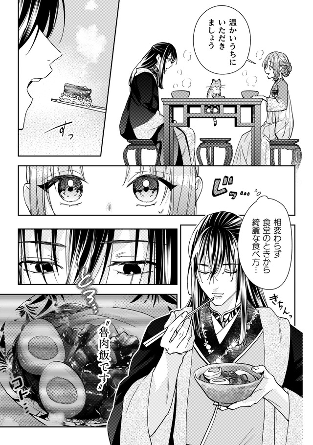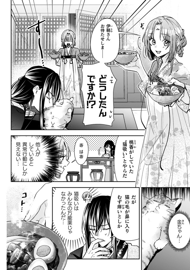しかし火事が起きて店は消失。食堂の常連で後宮に仕える美しい青年、陽伊鞘に救われるが、彼の頼みで後宮付きの薬膳医になることに。