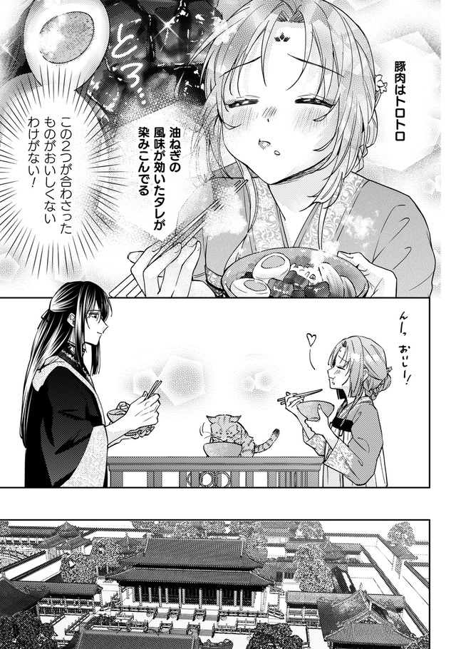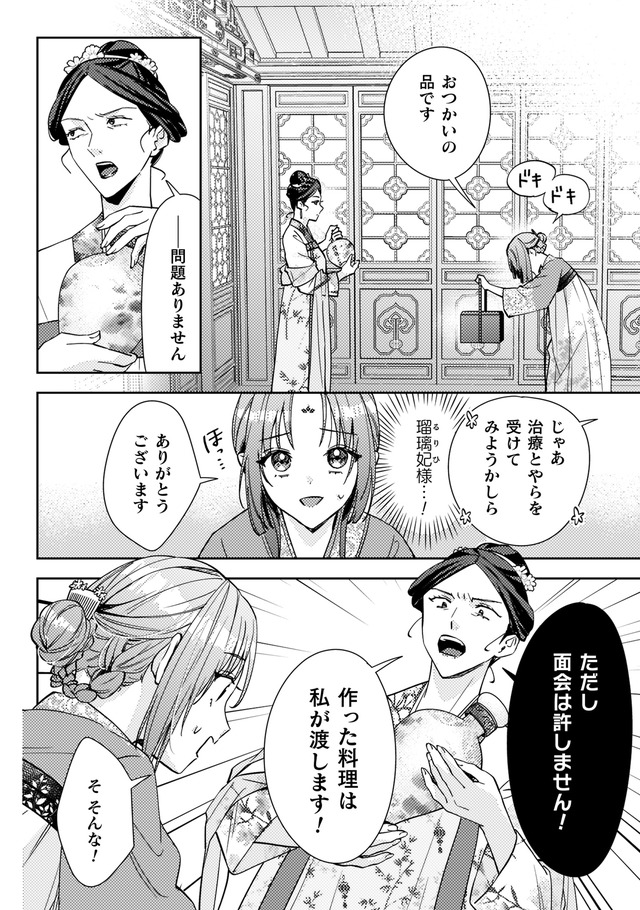 しかし火事が起きて店は消失。食堂の常連で後宮に仕える美しい青年、陽伊鞘に救われるが、彼の頼みで後宮付きの薬膳医になることに。