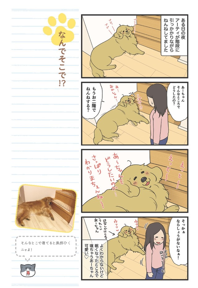 「ですし!」が口癖のゴールデンレトリーバー・アーティと、いつもイライラ怒ってばかりなのに家族思いなハチワレ猫・まめ。