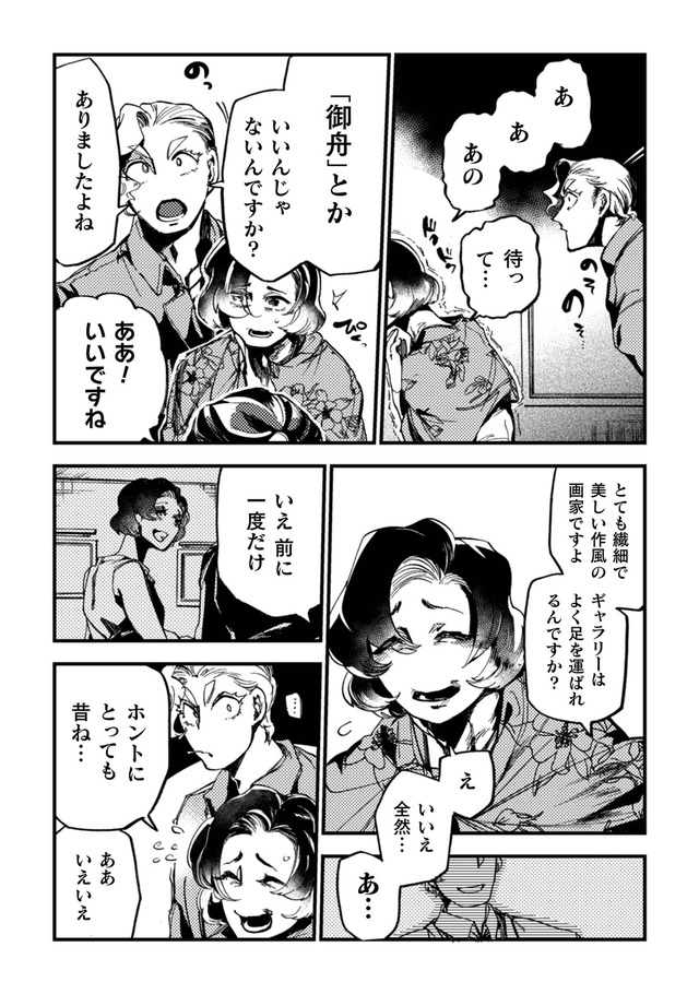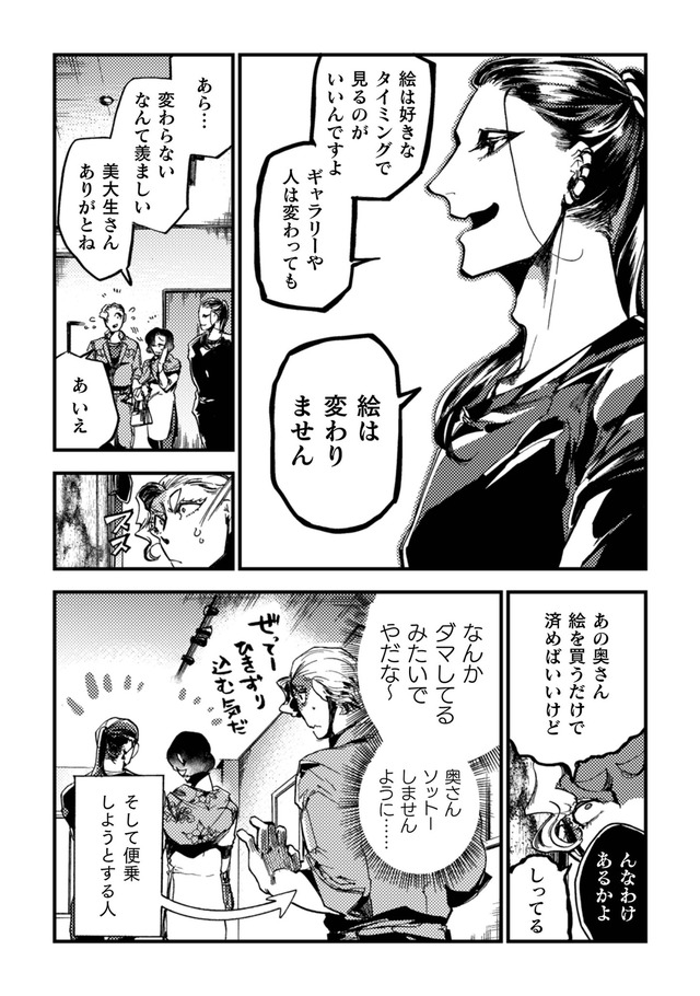 そんなある日、裏道の怪しい画廊を見つけて入ってみると、そこには妖しいオーナーと絵画の数々が彼を待っていた。