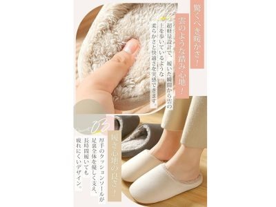 保温性は普通のスリッパの3倍以上!? 裏地のあったか起毛で熱気を閉じ込めます。疲れにくい厚底ソールを採用した、Amazonで今一番売れているレディース「ルームシューズ」!