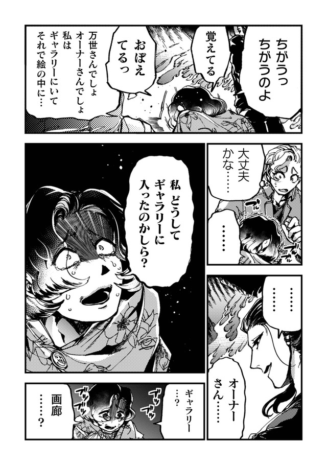 そんなある日、裏道の怪しい画廊を見つけて入ってみると、そこには妖しいオーナーと絵画の数々が彼を待っていた。