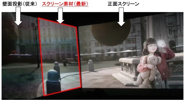 3月6日(金)より導入される最新スペック版は、従来のシステムをバージョンアップ。左右の壁面に正面と同様のスクリーン素材を施工、左右の映像を投影するプロジェクターもスペックアップすることで、正面と左右の3面スクリーンの映像が、これまで以上に明るく一体化し、没入感がさらに増大する。