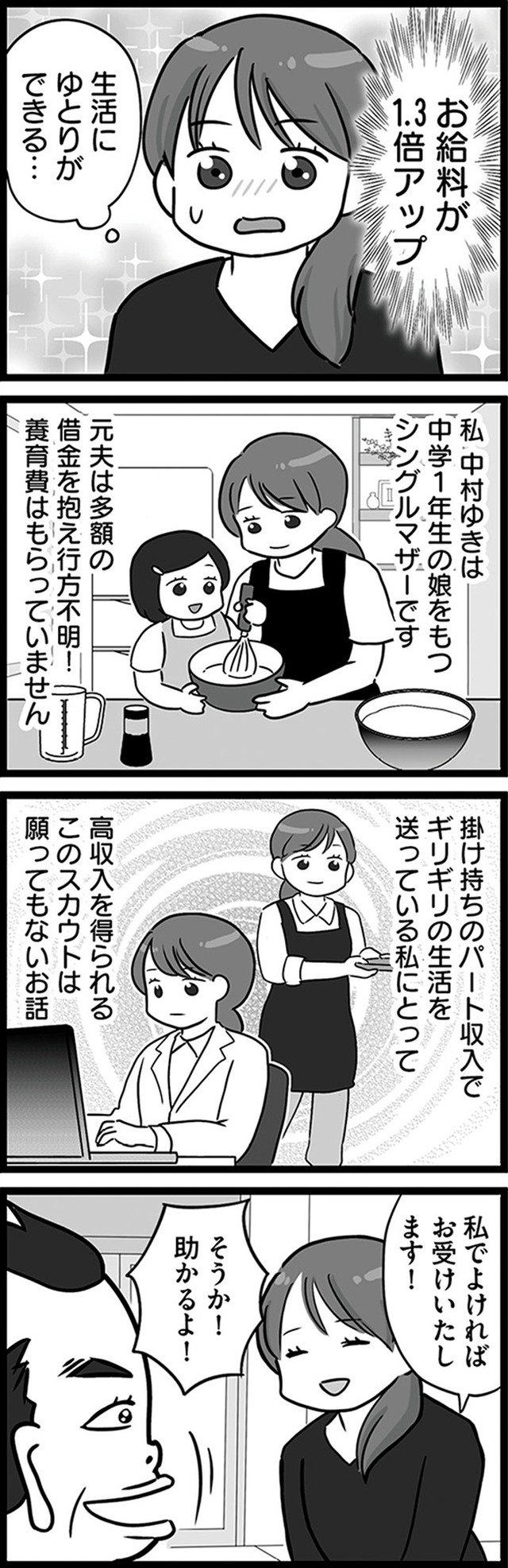 元上司から1.3倍の給料でスカウトされ、転職を決意した32歳のシンママ・ゆき。