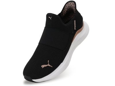 【プーマ】フワフワな履き心地♪ クッション性の高い「ソフトライド」をソールに搭載。スマートなシルエットで人気のランニングシューズ。かかと内側のヒョウ柄が、めちゃおしゃれ!