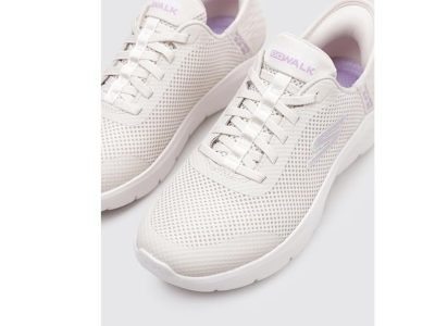 【スケッチャーズ】脱ぎ履きのスムーズさにファン多数! 独自の「ヒールピロー」で足をしっかり固定。ストレッチレースをあしらったメッシュのアッパーは、ソフトでかわいらしい印象