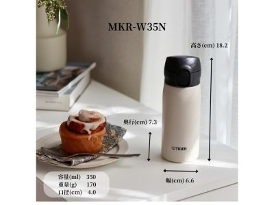 【食洗器対応・パッキン一体モデル】タイガー魔法瓶 水筒 350ml ワンプッシュ ステンレスボトル 飲みやすい設計 ふたとパッキンが一体化で洗うのは3点のみ らくらくキャップ 真空断熱 マグ 保温保冷 ベージュ MKR-W35NCS