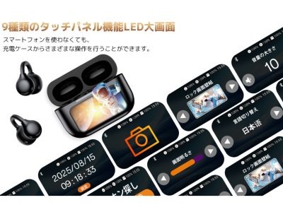 早くも2026新型が登場。しかも93%OFF! 充電ケースに「スマートタッチディスプレイ」を搭載したイヤーカフ型。最大60時間も連続使用OK!