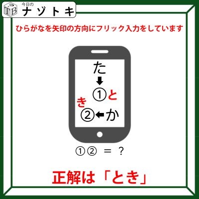 あとは実際にやってみましょう。「た」下矢印は「と」となり、「か」の左矢印は「き」となります。つまり、そのまま読んで「とき」となります。正解は「とき」でした。