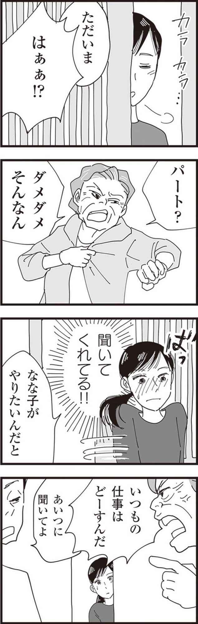 一方、忍の妻・香織は、最近になって夫の様子に違和感を覚え始める。夫の不倫相手は、娘のママ友であり、夫の職場で働くパートのなな子だった。