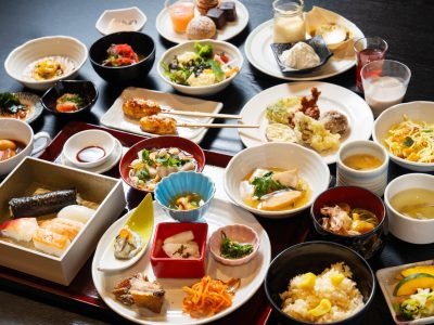 ビュッフェレストランでは、こづゆ、棒鱈煮、ねぎそば、しんごろうなどの郷土料理の他、オープンキッチンでステーキ、すしなど出来たてを提供。「少しずつ全部食べたい(笑)。会津の牛乳を使ったソフトクリームなどデザートも美味!」