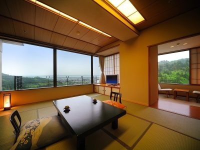 明るく開放的な和室の部屋。客室は全160室。和室、洋室、特別和洋室、大部屋などタイプも広さも選択肢が豊富。