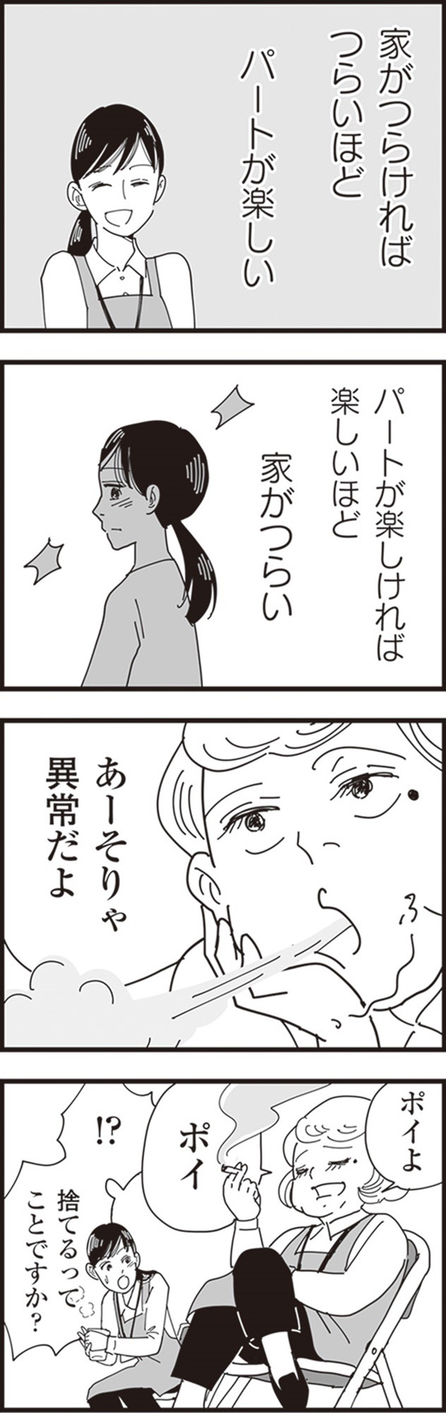 一方、忍の妻・香織は、最近になって夫の様子に違和感を覚え始める。夫の不倫相手は、娘のママ友であり、夫の職場で働くパートのなな子だった。