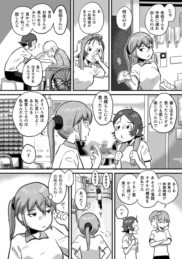 新人・鬼岡と、彼女の教育係となった熊本。そこに待ち受けている理想と実態。抗いながら、揉まれながら、鬼岡と熊本は入所者に寄り添い「明日」を紡いでいく。