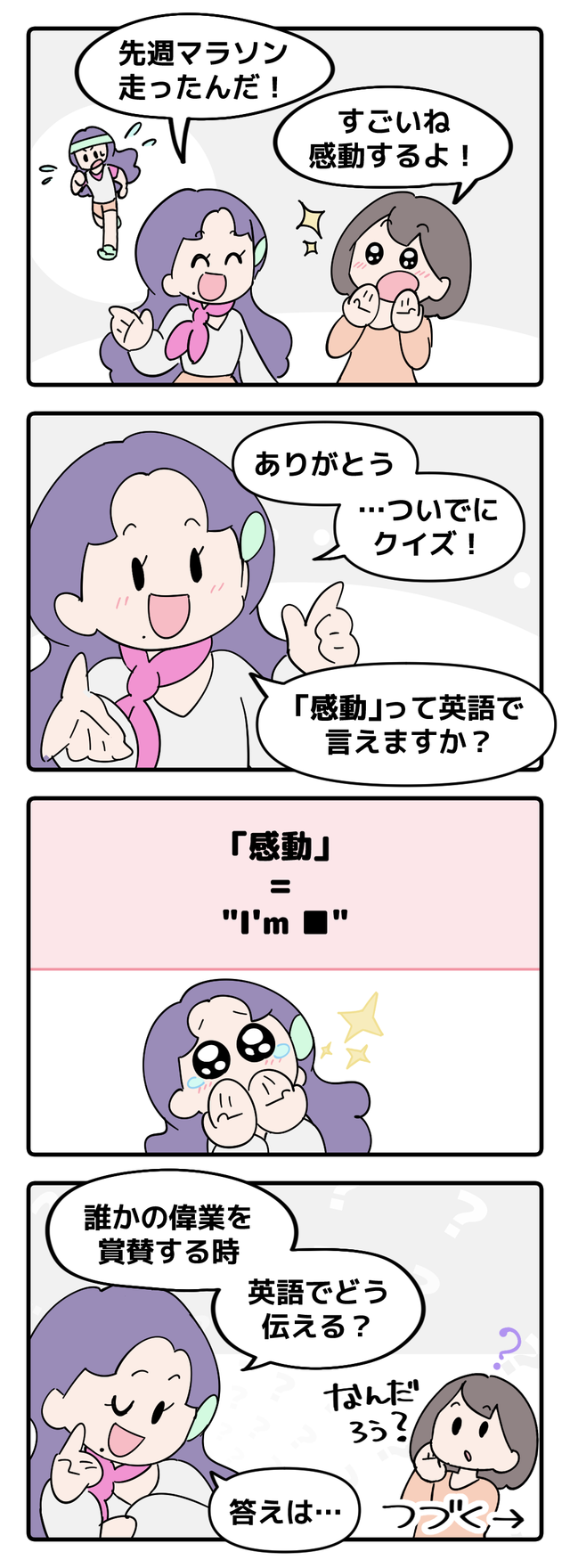 「英語嫌いな日本人をなくしたい!」海外生活や添乗員経験、そしてバイリンガル子育て中の英会話講師・Mrs.服部が、身近な英語表現を漫画&クイズ形式でお届け! 「間違ったら恥ずかしい」じゃなく「伝わればOK」。使えるフレーズをマンガで学びましょう!
