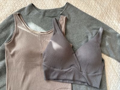 備長炭を練りこんだレーヨンと綿のミックス素材で、着るだけでなんとも心地よいあたたかさに包まれる感覚に。縫い目がない無縫製がこだわりの商品で肌ざわりも抜群なうえ、背中の肩甲骨の間に(セットのレギンスは腰に)磁石が内蔵された磁気ウェア。まさかナイトウェアだとはバレないスタイリッシュなデザインなので在宅勤務のときはそのまま過ごし、お迎えコーデまで対応してしまうという「しごでき」すぎるアイテムです。インナーも寝るときはナイトブラ(右)、日中はカップつきタンクトップ(左)と使い分けていて、どれだけ磁石マニアなんだと思われそうですが、いずれも背中の肩甲骨の間に沿って磁石が内蔵されています。肌になじんで響きにくい、おしゃれで気分が上がるニュアンスカラーも魅力的。タンクトップはもう一生これだけ身につけていたいぐらいの推しアイテムです。