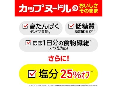 爆売れ中「高たんぱく&低糖質」なカップ麺シリーズ「カップヌードルPRO」の中で、最も低糖質なのがコレ。通常タイプよりも食物繊維たっぷり!しかも塩分25%OFF