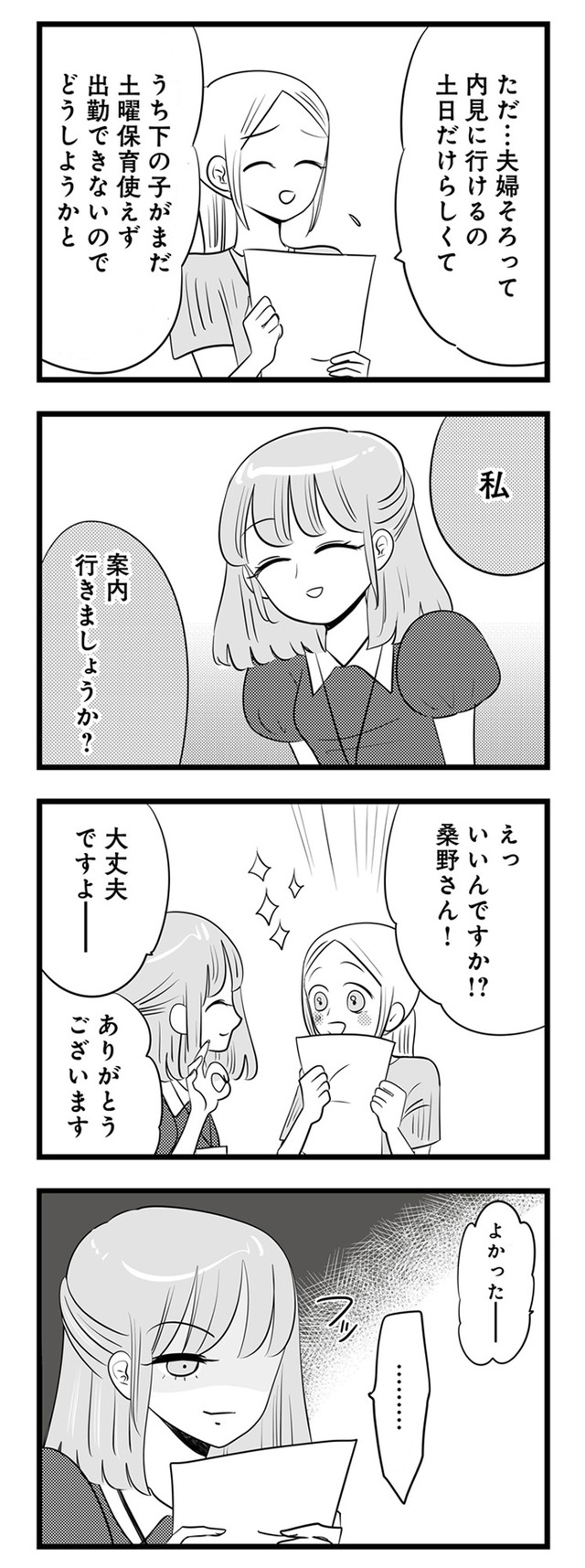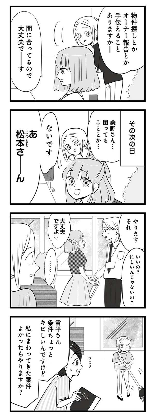 産休から戻った雪平の自然体な仕事ぶりと対人スキルにやきもきし、桑野は密かに雪平をライバル視する。