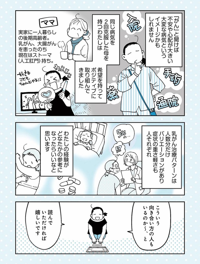 自分なりの向き合い方を描いた乳がん治療体験コミックエッセイ。