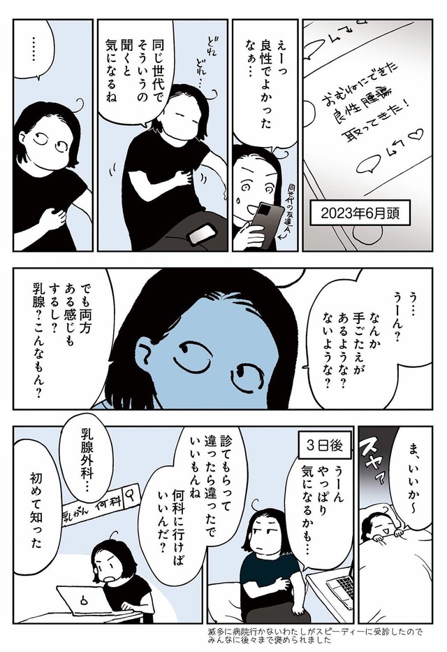 大きな病気もせずに過ごしていたある日、胸のしこりに気づく。