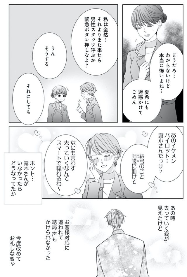 パイロットの元恋人に裏切られた過去から縁談を断るつもりだったが、待ち合わせの場で露木も結婚する気がないと知り、ひと安心する。