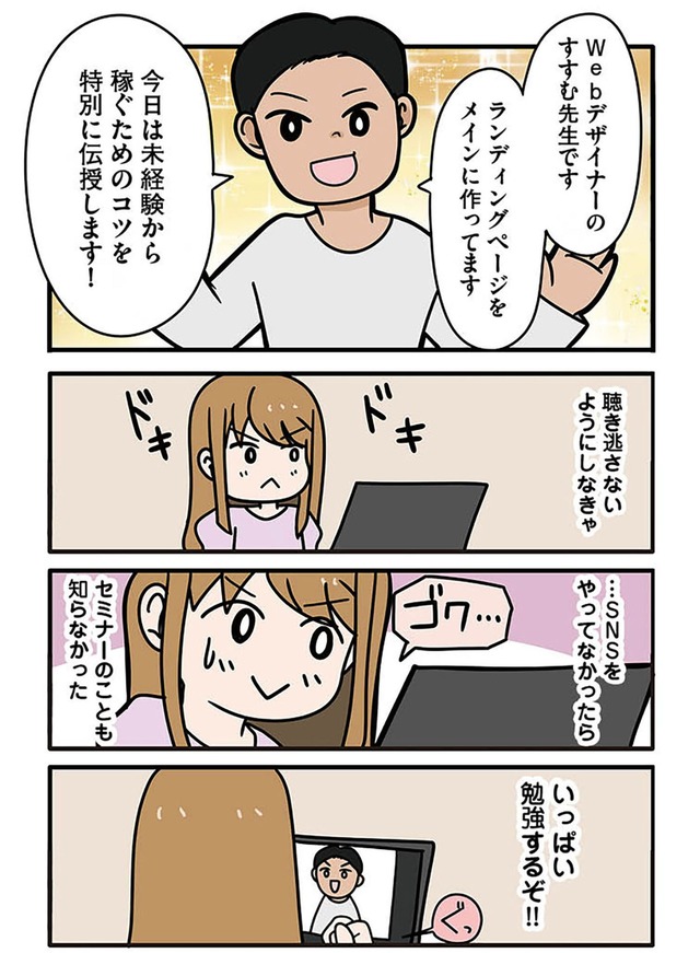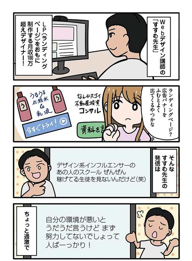 成功しているインフルエンサーの発信に胸を膨らませてオンラインスクールに入るものの、そこで待っていたのは怪しすぎる指導と不安だらけの日々。