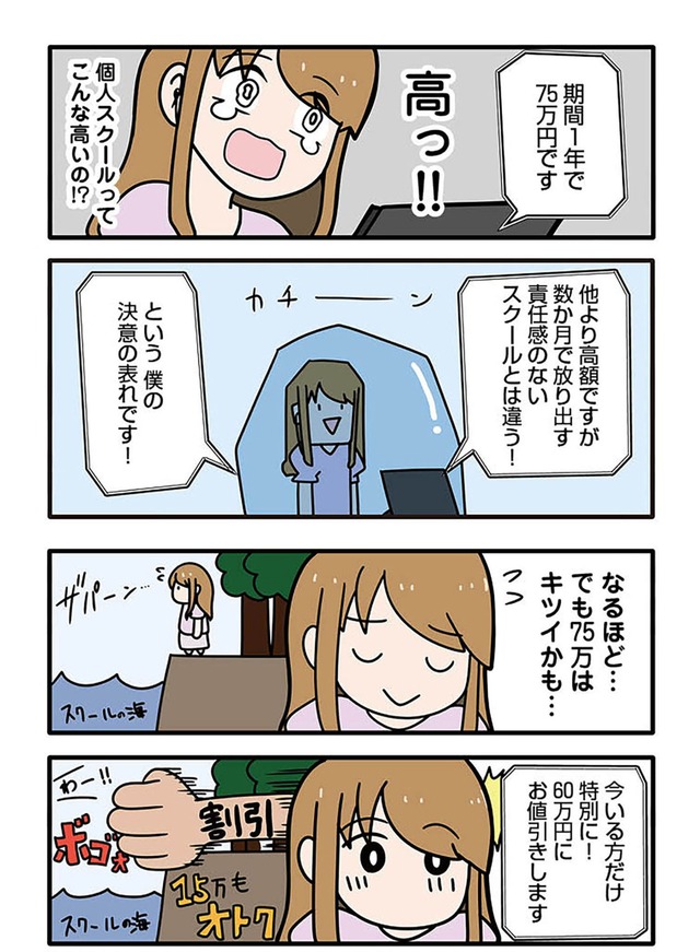 成功しているインフルエンサーの発信に胸を膨らませてオンラインスクールに入るものの、そこで待っていたのは怪しすぎる指導と不安だらけの日々。