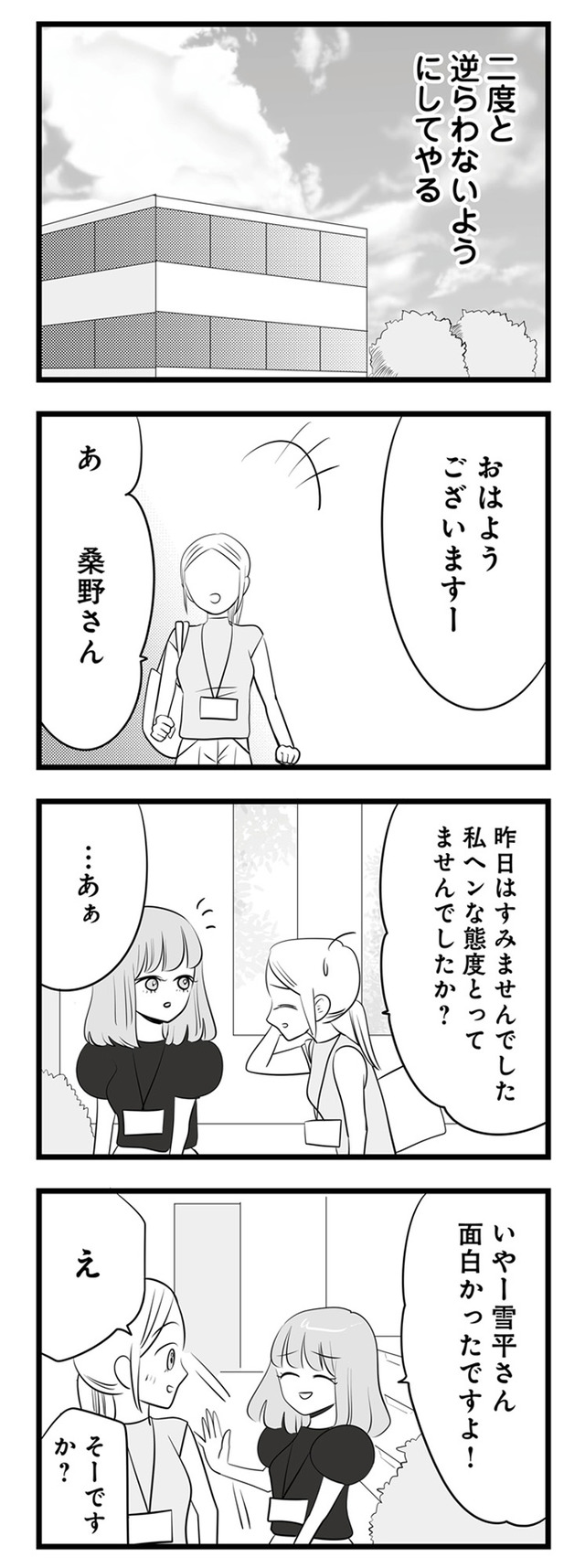 産休から戻った雪平の自然体な仕事ぶりと対人スキルにやきもきし、桑野は密かに雪平をライバル視する。