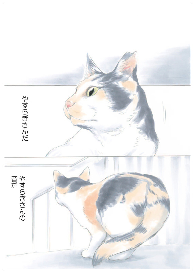 ミケちゃんとやすらぎさんを繋ぐ、心癒される感動のコミックエッセイをお届けします。