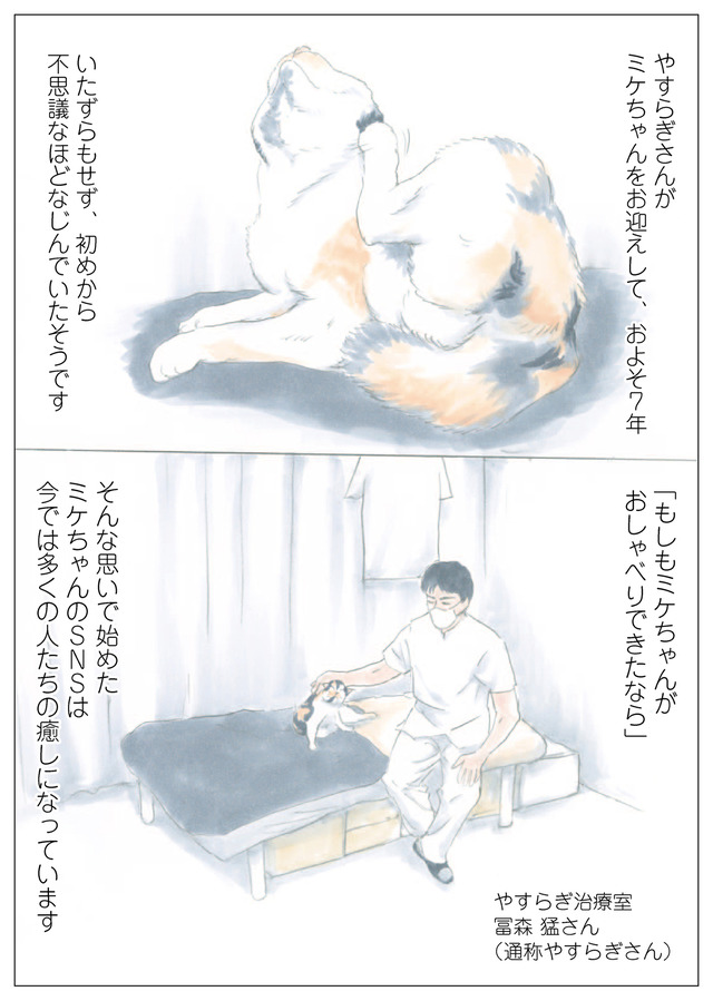 ※本作品はやすらぎさん・にごたろ著の書籍『ミケちゃんとやすらぎさん』から一部抜粋・編集しました。