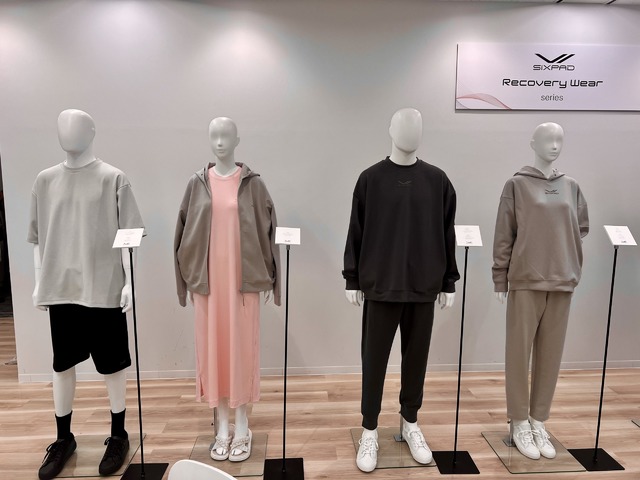 既存のアイテムはもちろんですが、注目は春夏向けにリリースされるアイテムたち。マネキンを見ればわかる、全身リカバリーウェアでコーディネイト可能! よりデイリーに着られるアイテムが増えた結果、365日24時間対応できるコーデが可能になっているのです。上下セットだけでなく、単品でも販売されているのがSIXPADの大きなポイントです。上下違う色を買うことでよりワンマイル感を減らすことも可能。