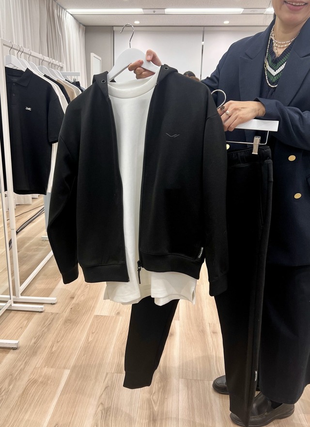 しかも、前あきのジップパーカーもラインナップにあるので、着こなしにさらなるバリエが。手持ちのアイテムにパーカーを羽織るだけで、リカバリーウェアの機能を簡単にプラスすることもできますし、なんなら、リカバリーウェアのセットアップを着て、さらにパーカーを羽織って、なんと「リカバリーウェアの重ね着」まで可能に!