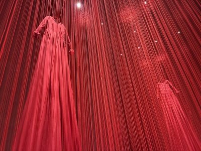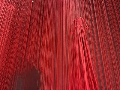 圧巻は、まる1室を使って展示されていた塩田千春の作品。赤、時に白や黒の細い糸で空間を編み出し、その土地その時間の思いを閉じ込める塩田千春氏のインスタレーション作品は、国内では十和田市現代美術館、福岡市美術館、越後妻有などに収蔵されています。本作『I hope…』はベルリンの聖ニコライ教会で発表され、話題を集めた大規模インスタレーション。
