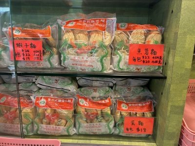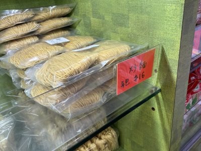 こじんまりとした店内に、あらゆる麺がぎっしりと並んでいます。主なフレーバーは15種類、さらに細麺や太麺などのバリエがあります。こちらも日本人観光客にフレンドリーで、商品によっては日本語の説明も。見ていると「どんな麺がほしいの?」と声をかけてくれます。私はホテルで食べた雲吞麺と、香港焼きそばを作るための蝦子麺が欲しいのですが……。