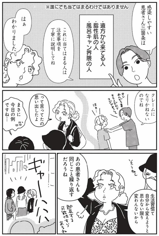 「社割で美容代がお得になる」という甘い言葉に惹かれて働き始めたものの、待っていたのは顔面ギプス姿の先輩や、アニメキャラの顔を目指す患者、社長が連れてくる大量のキャバ嬢たち……。