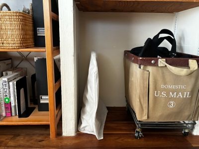 本体サイズ:幅約420×奥行433×高さ94mmという数字を見ると一見存在感が強く思えますが、すっきりしたデザインに加え、自立可能な形状のため、ちょっとした隙間にストレスなく収まります。もともと主張の少ない色味なので、そのまま置いてもインテリアの邪魔にならない……これは高評価ポイントです!