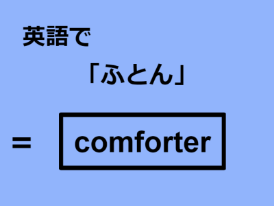 ちなみに、アメリカの家具屋さんの広告に futon と載っていましたが、こちらは日本式のものではなく、ソファーベッドに近いものになります。日本人のイメージする布団は「futon」では通じませんので気をつけましょう。また、イギリス英語では duvet(デュベィ)となります。